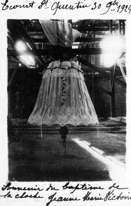 We know from Clémence Leroy that on May 18 1917, the church bell was requisitioned and, left for parts unknown. Godspeed. Ah! Prussians, damned Prussians… Clémence mourned the church bell but the war wasn’t through with the church. On March 12, 1918 the roof of the church was hit and the glass windows are shattered by a terrible bombardment (presumably by the British). The calamity is magnified as the church, for some time, had been turned into a military hospital. Clémence Leroy describes the scene on March 12, 1918: