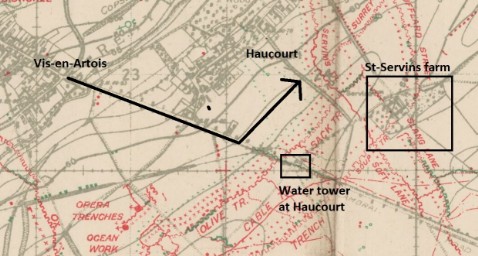 [1] Haucourt is a village on te Arras-Cambrai Road immediately East of the large village of Vis-en-Artois.